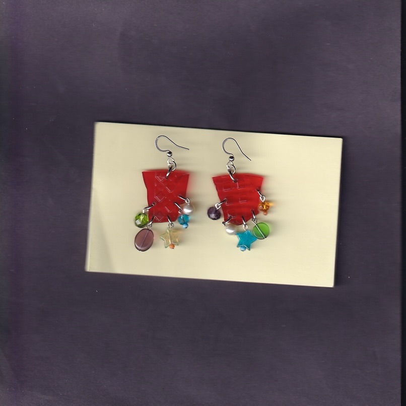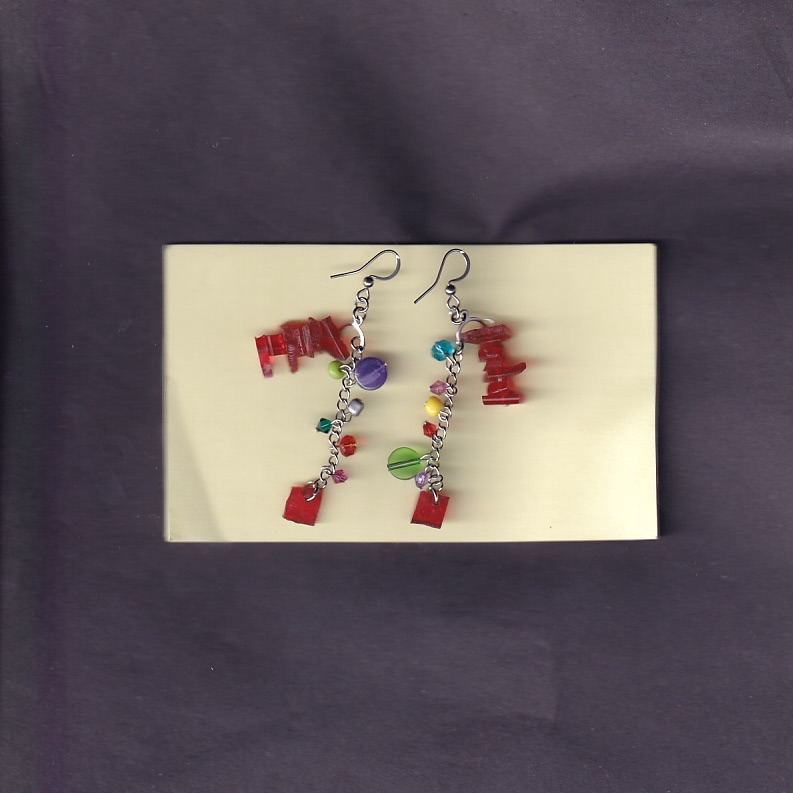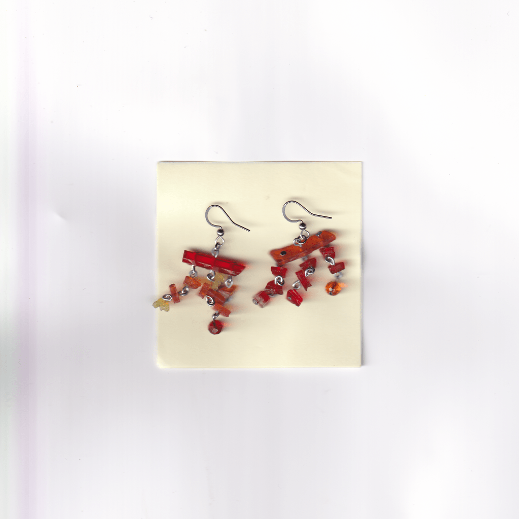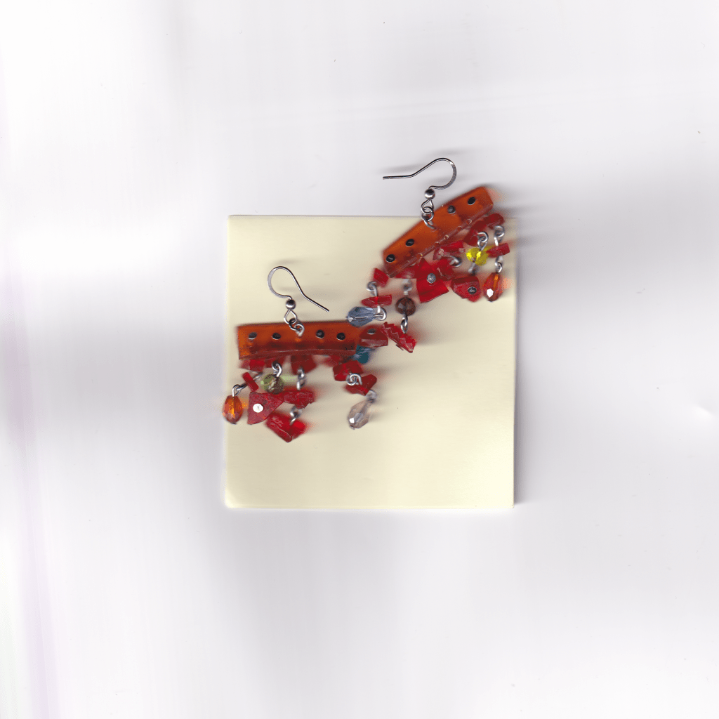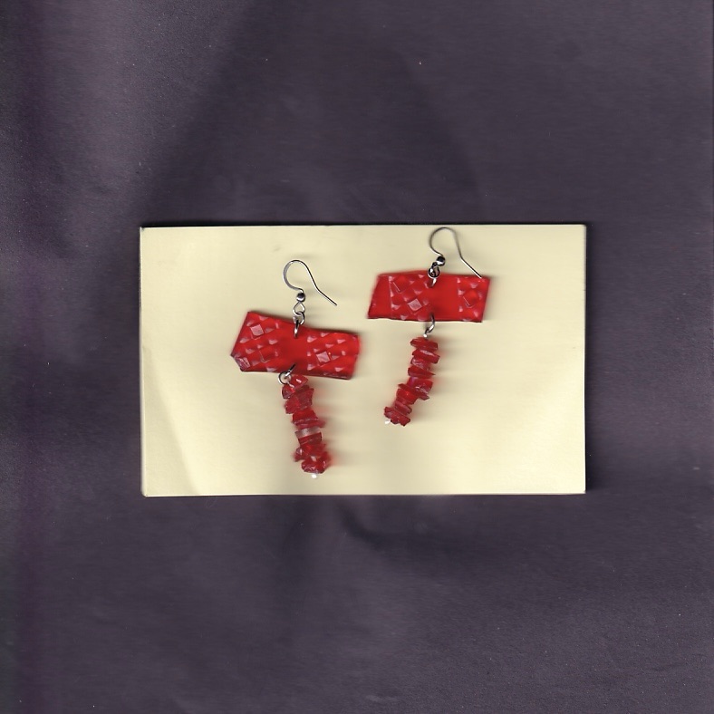 all of the earrings below are made with pieces from car lights that i have found on the streets of Birmingham. some of them also feature pieces from broken lighters, also found.