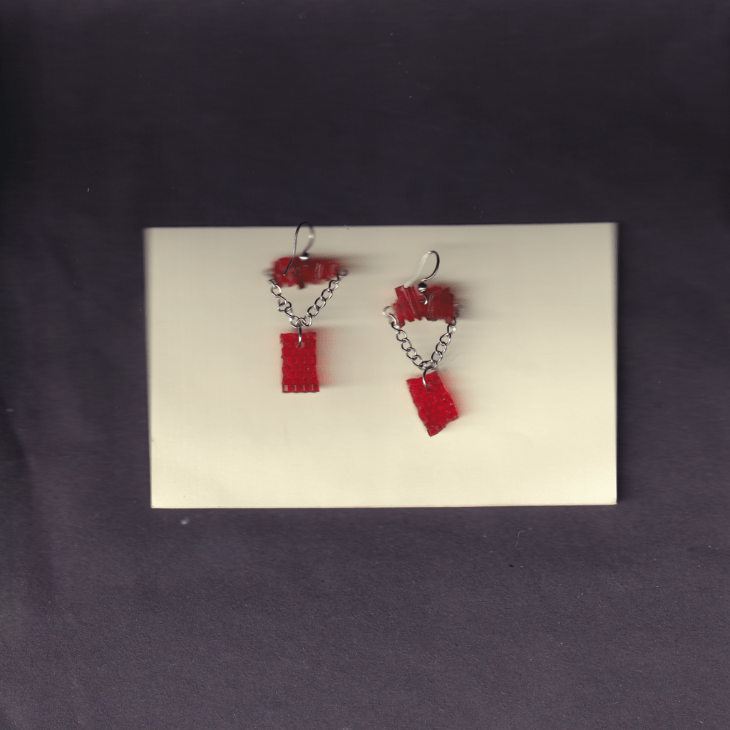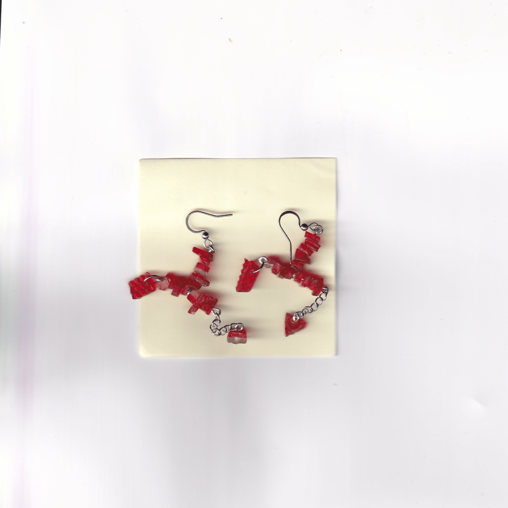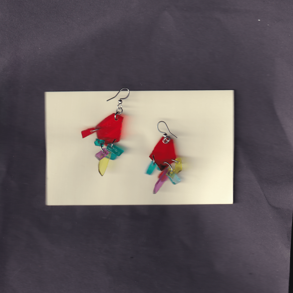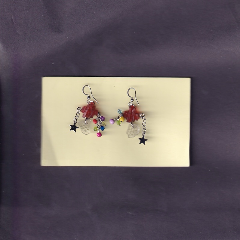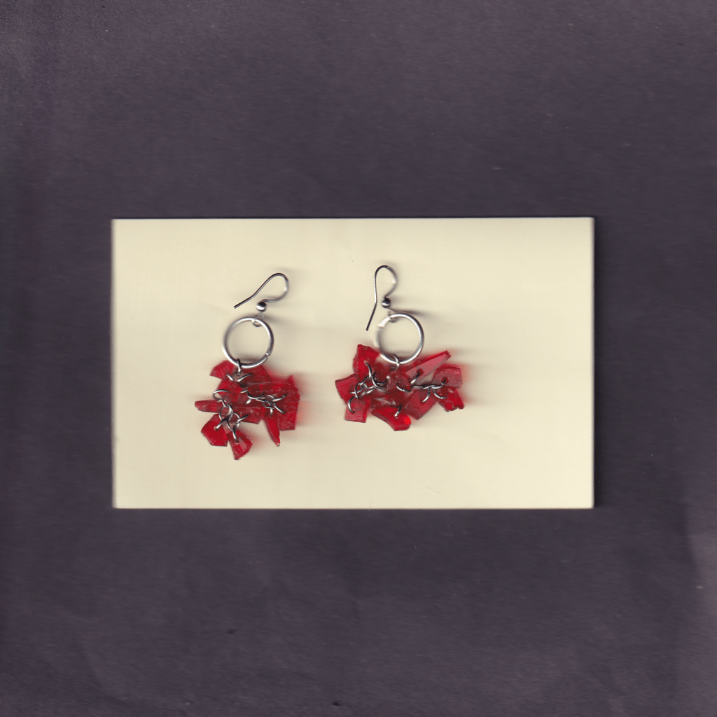all of the earrings below are made with pieces from car lights that i have found on the streets of Birmingham. some of them also feature pieces from broken lighters, also found.