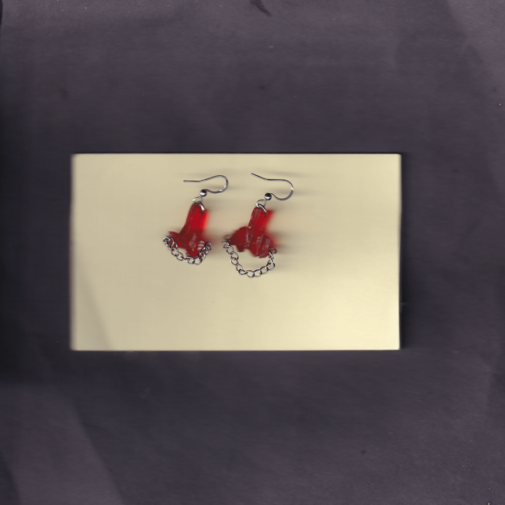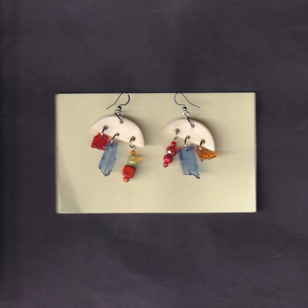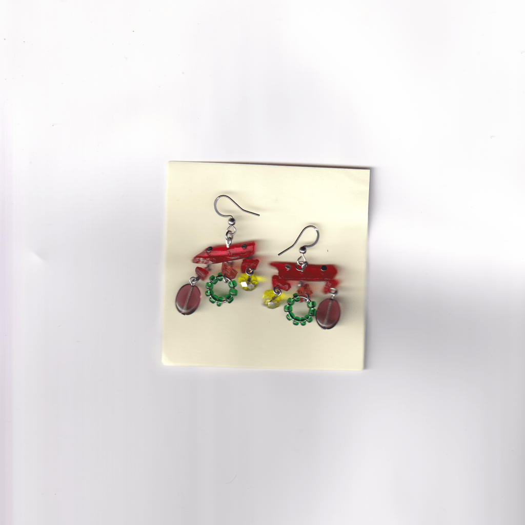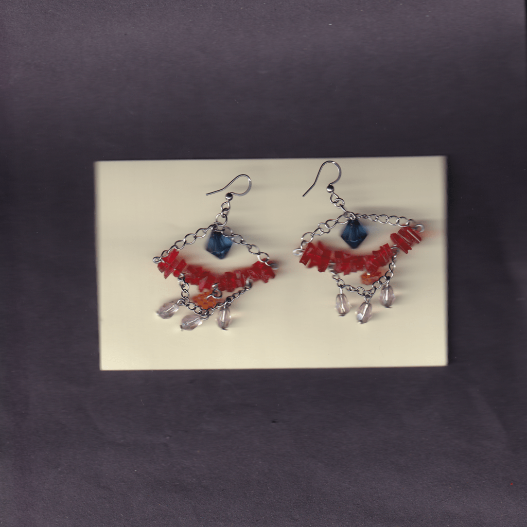 all of the earrings below are made with pieces from car lights that i have found on the streets of Birmingham. some of them also feature pieces from broken lighters, also found.